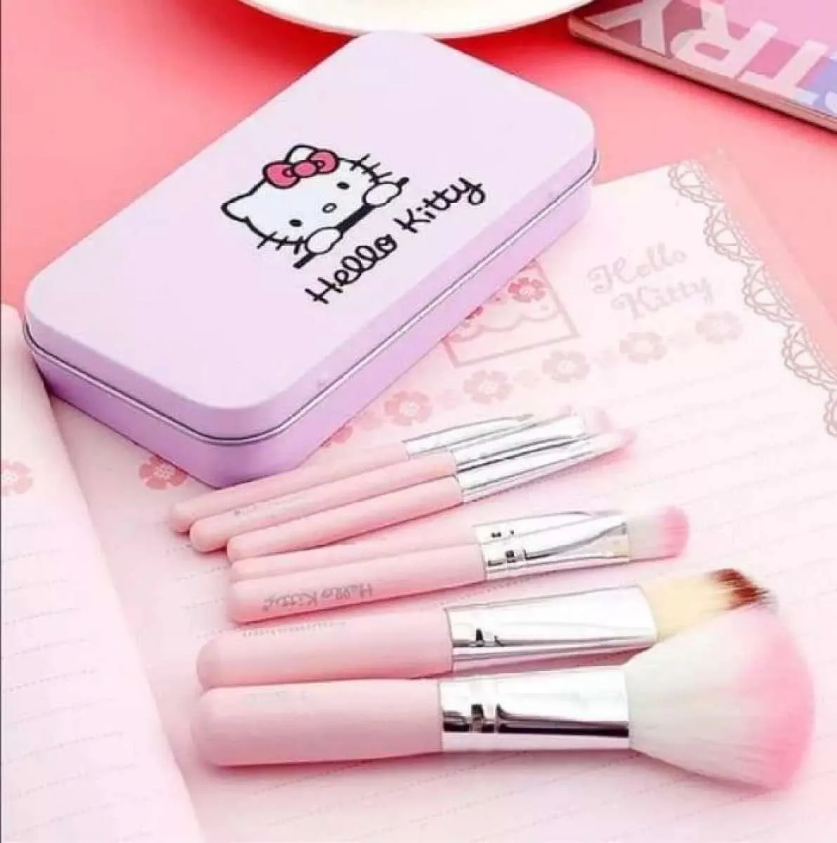 • Hello Kitty themed 7pcs makeup brushes set.